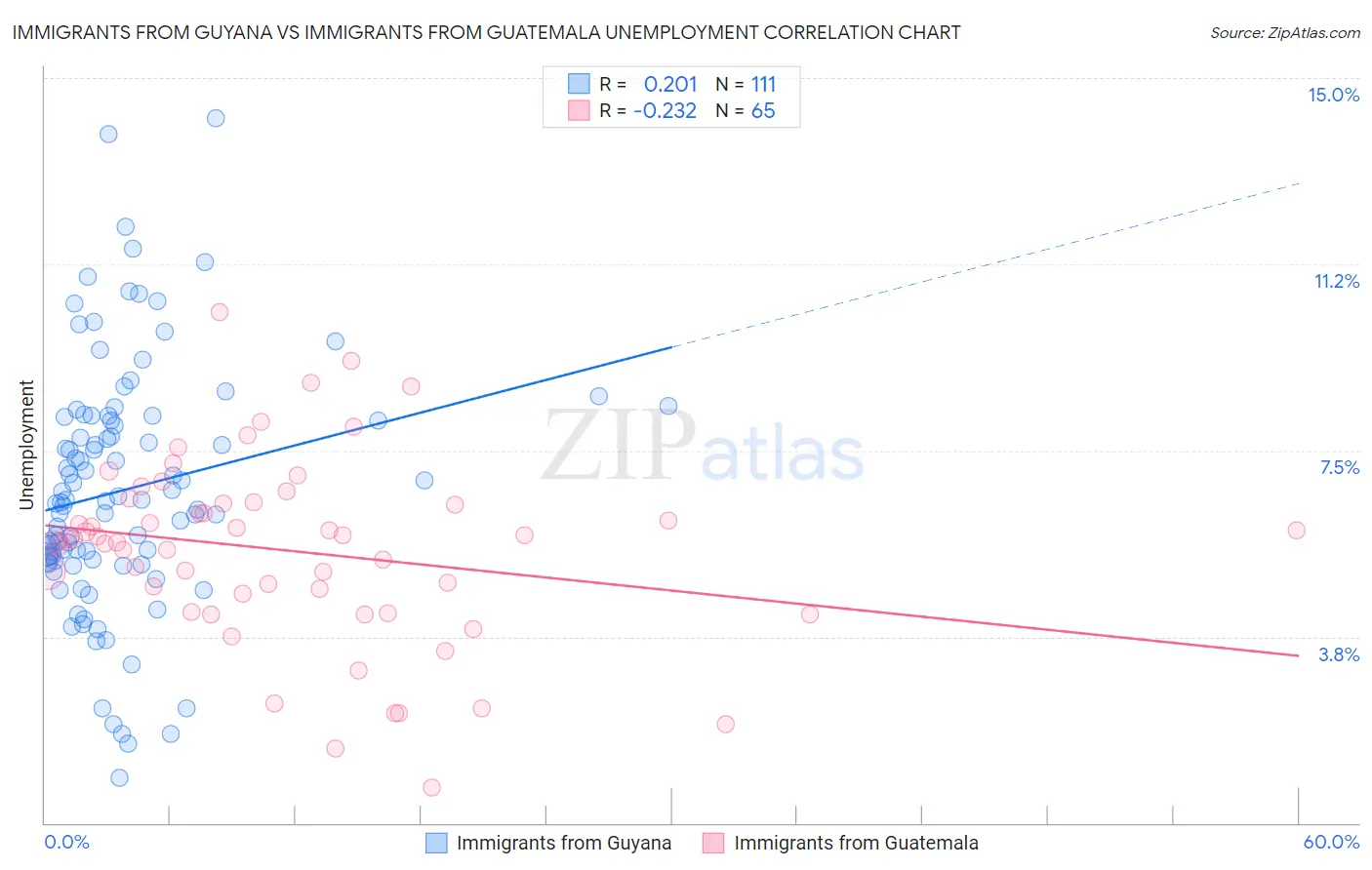 Immigrants from Guyana vs Immigrants from Guatemala Unemployment Correlation Chart