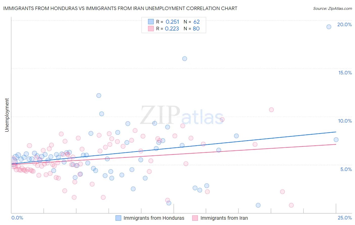 Immigrants from Honduras vs Immigrants from Iran Unemployment Correlation Chart