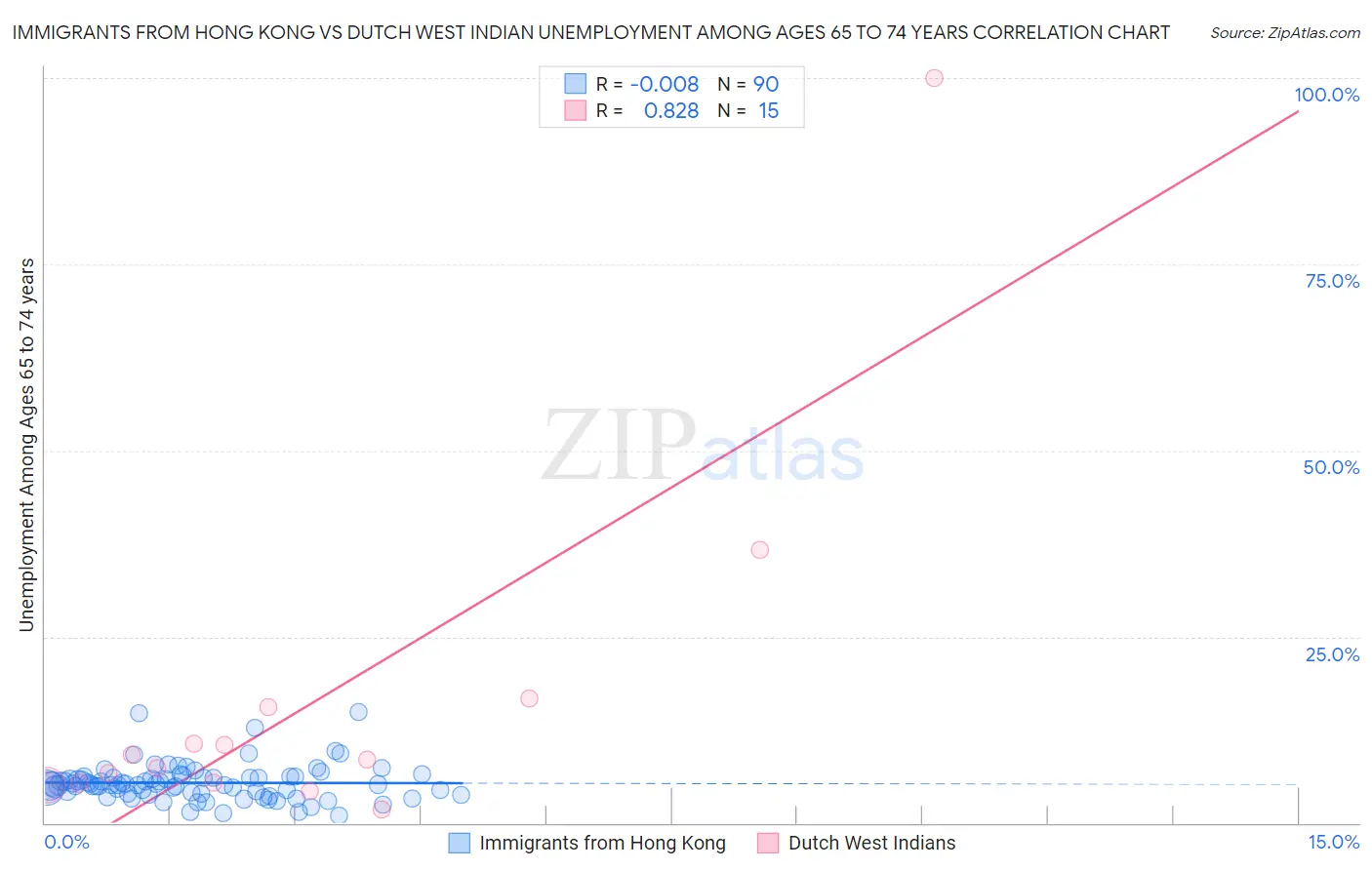 Immigrants from Hong Kong vs Dutch West Indian Unemployment Among Ages 65 to 74 years Correlation Chart