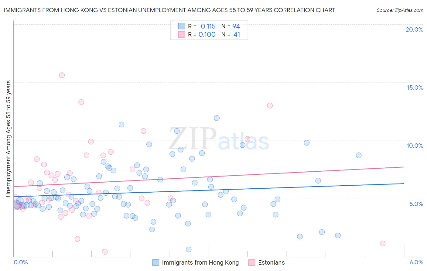 Immigrants from Hong Kong vs Estonian Unemployment Among Ages 55 to 59 years