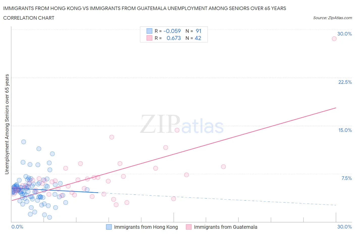 Immigrants from Hong Kong vs Immigrants from Guatemala Unemployment Among Seniors over 65 years Correlation Chart