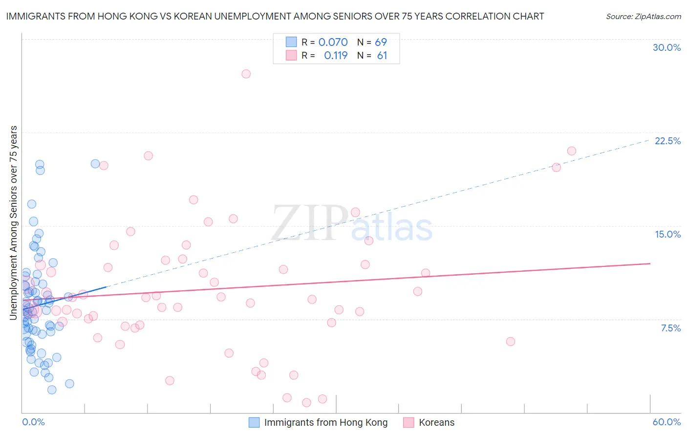Immigrants from Hong Kong vs Korean Unemployment Among Seniors over 75 years