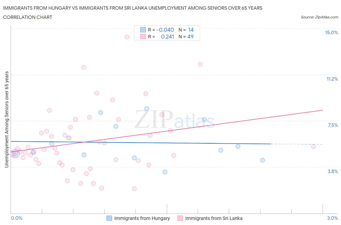 Immigrants from Hungary vs Immigrants from Sri Lanka Unemployment Among Seniors over 65 years Correlation Chart