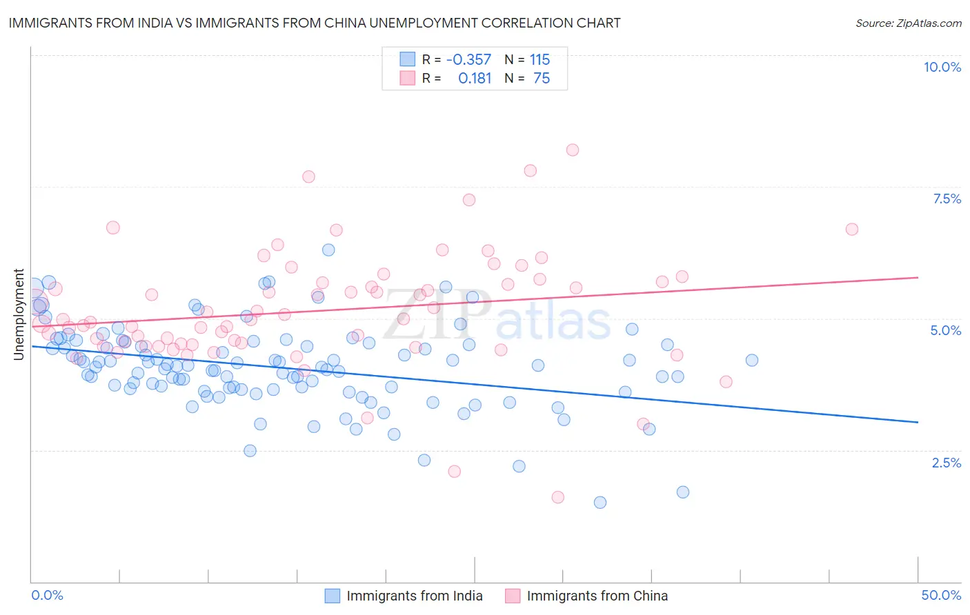 Immigrants from India vs Immigrants from China Unemployment Correlation Chart