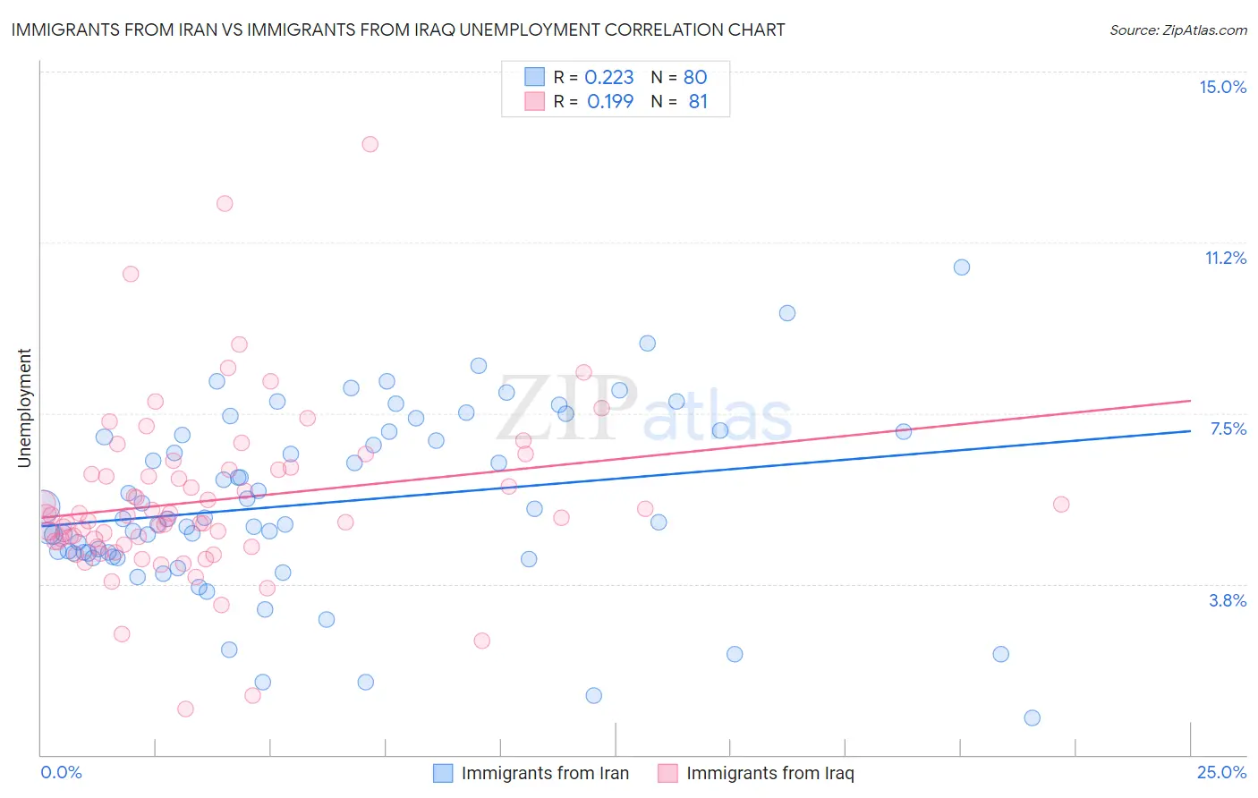 Immigrants from Iran vs Immigrants from Iraq Unemployment Correlation Chart
