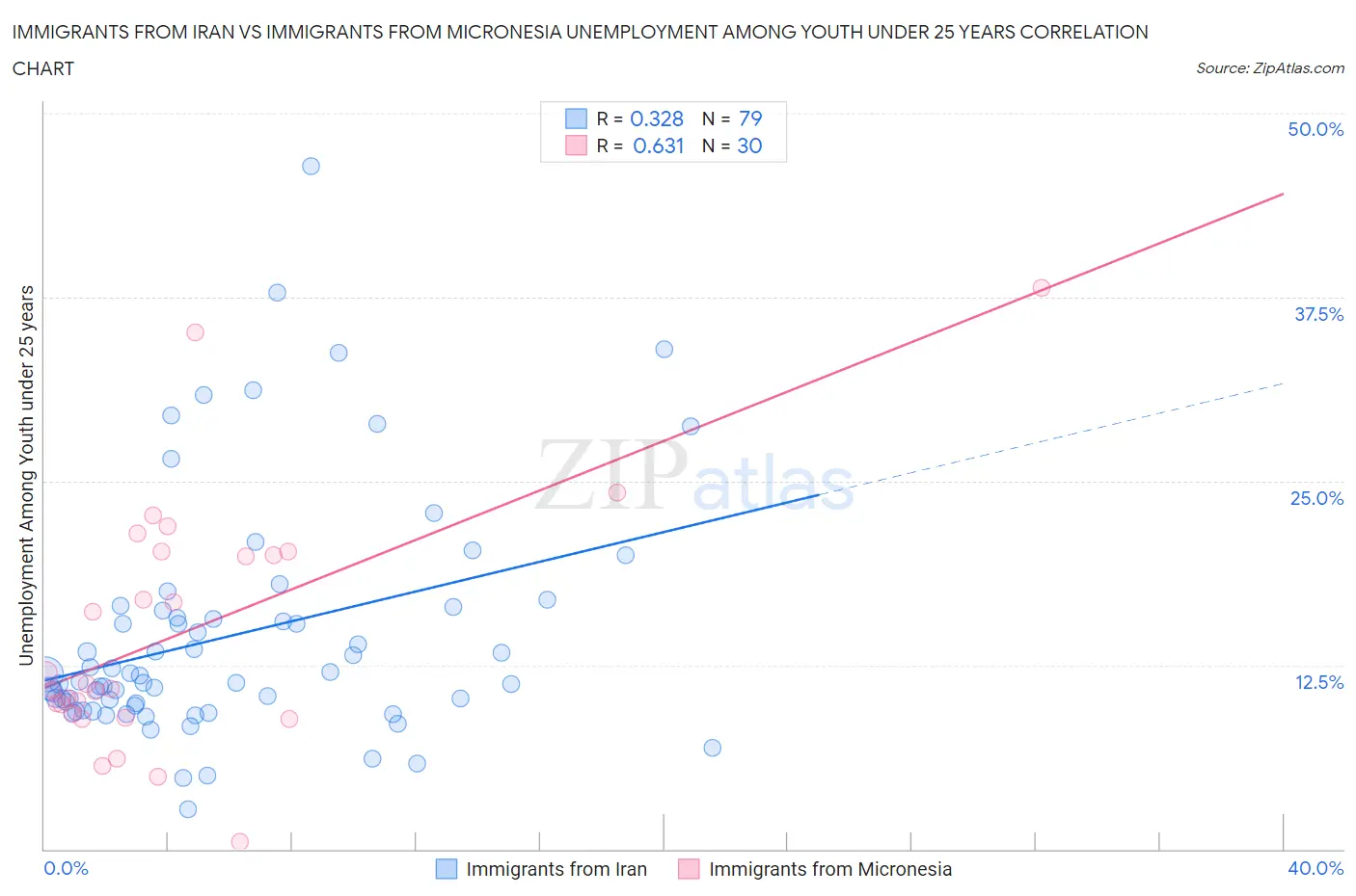 Immigrants from Iran vs Immigrants from Micronesia Unemployment Among Youth under 25 years Correlation Chart