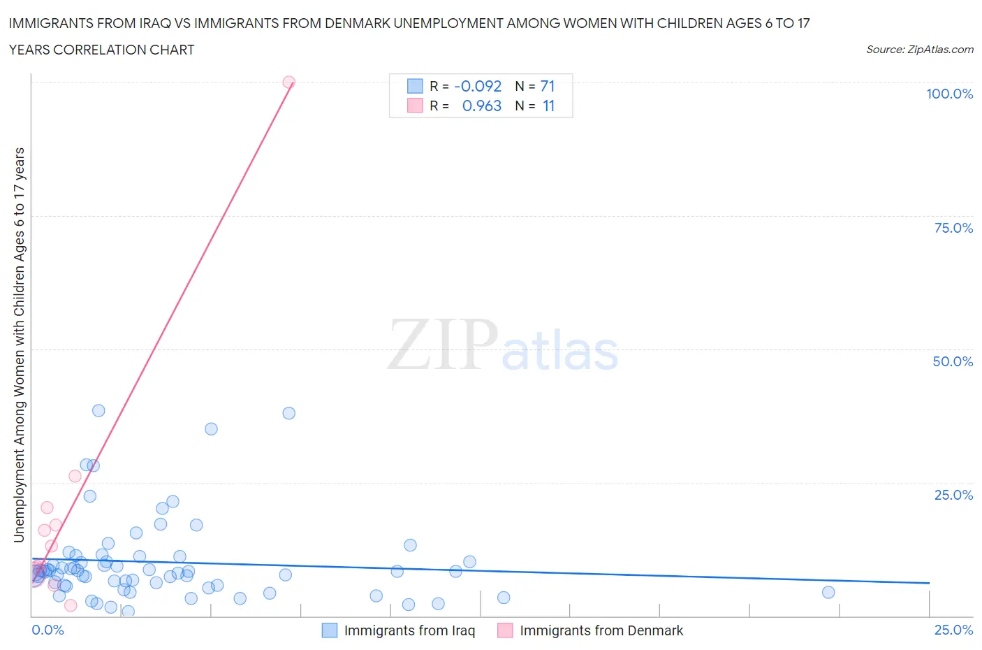 Immigrants from Iraq vs Immigrants from Denmark Unemployment Among Women with Children Ages 6 to 17 years Correlation Chart