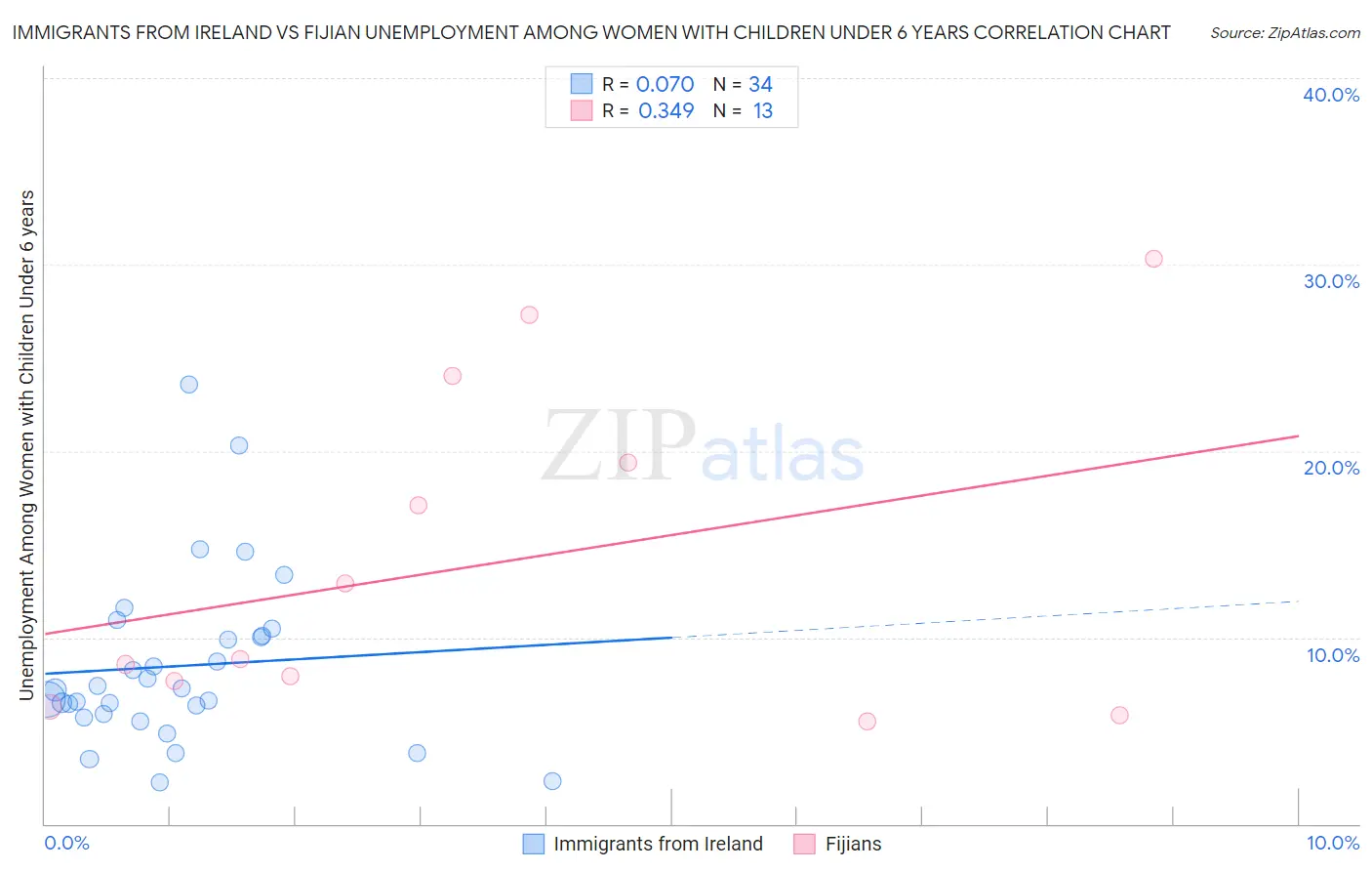 Immigrants from Ireland vs Fijian Unemployment Among Women with Children Under 6 years Correlation Chart