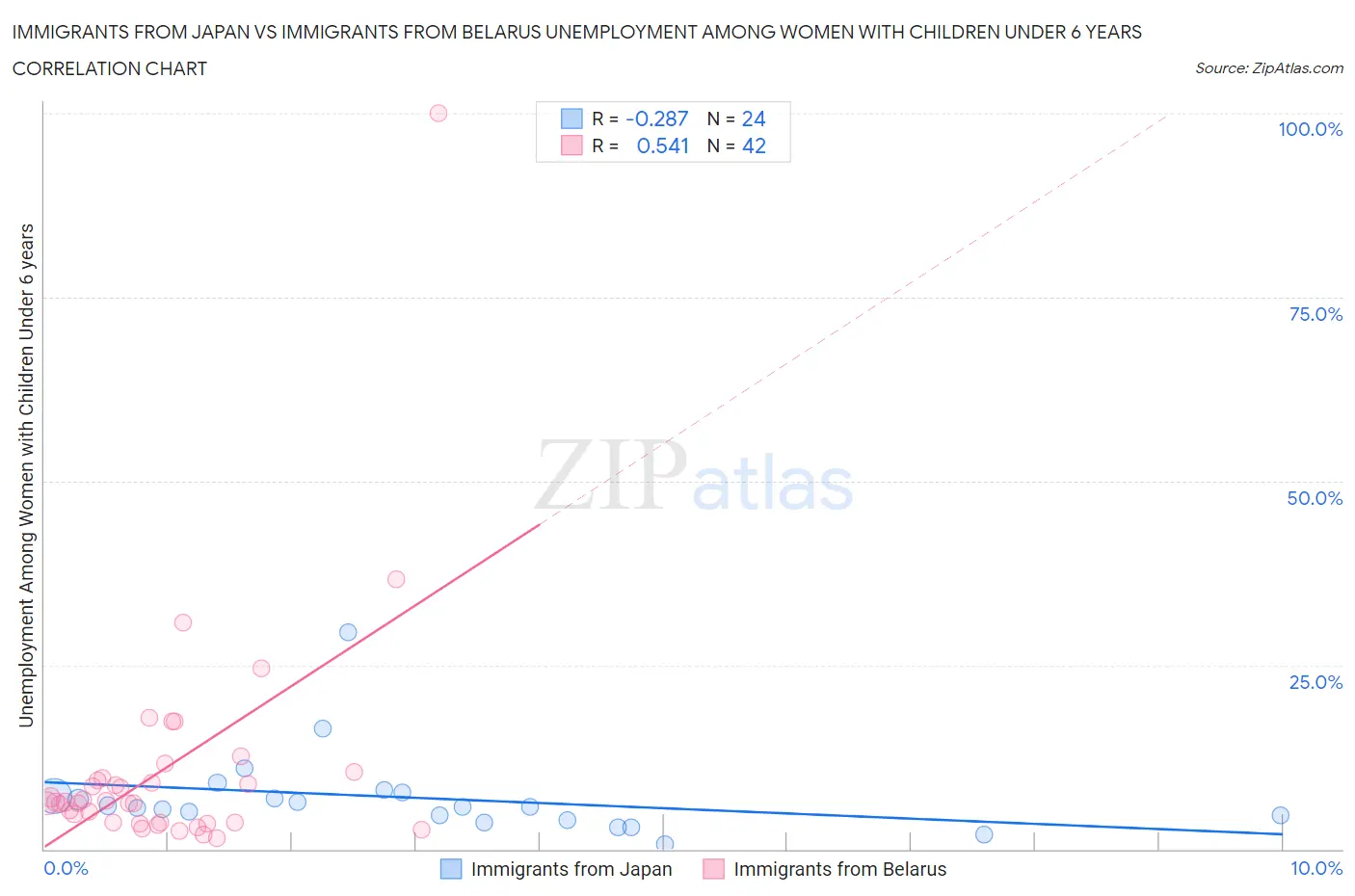 Immigrants from Japan vs Immigrants from Belarus Unemployment Among Women with Children Under 6 years Correlation Chart