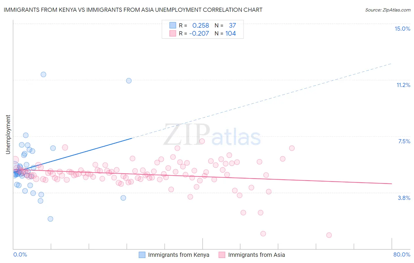 Immigrants from Kenya vs Immigrants from Asia Unemployment Correlation Chart