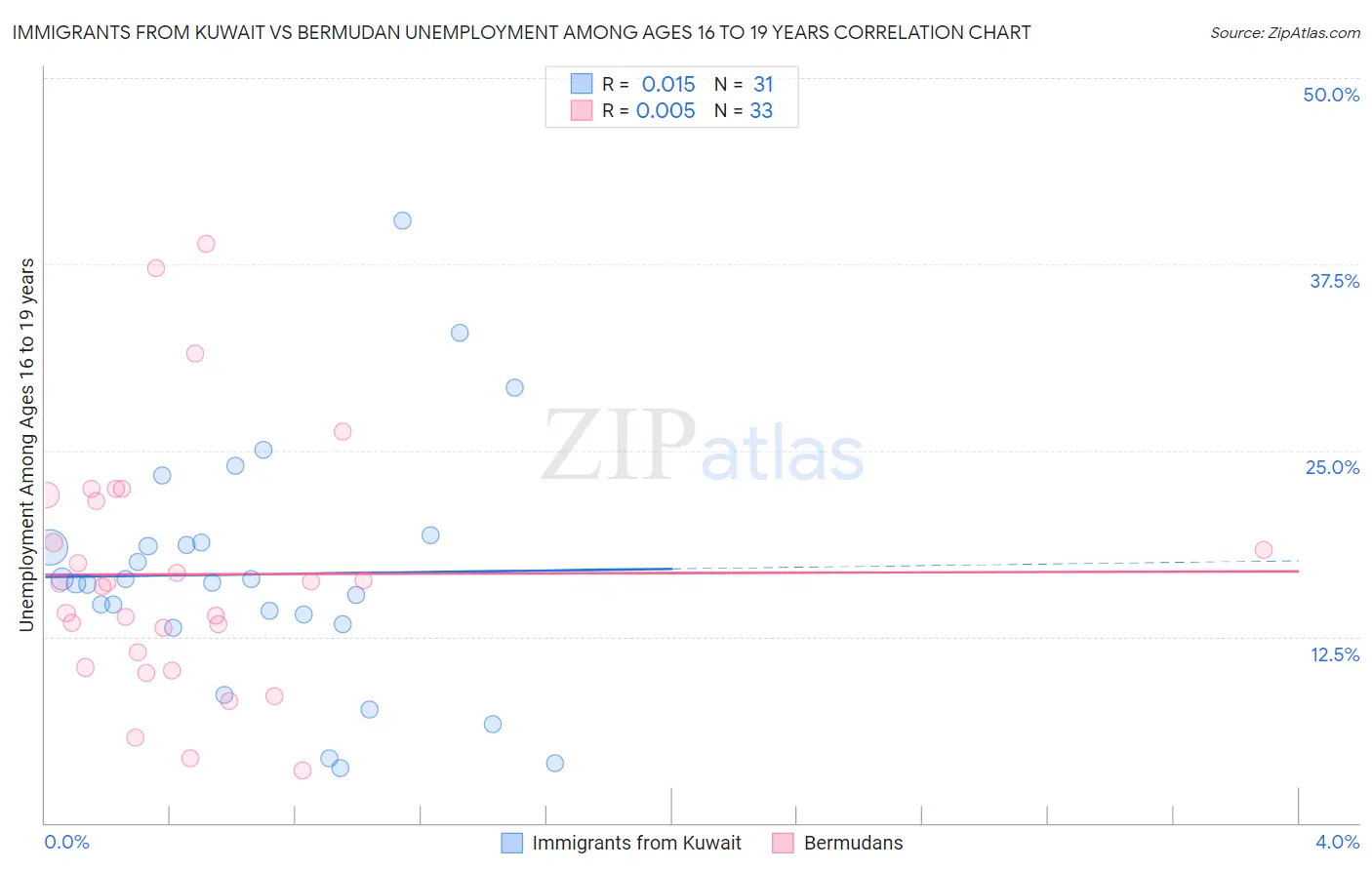Immigrants from Kuwait vs Bermudan Unemployment Among Ages 16 to 19 years Correlation Chart