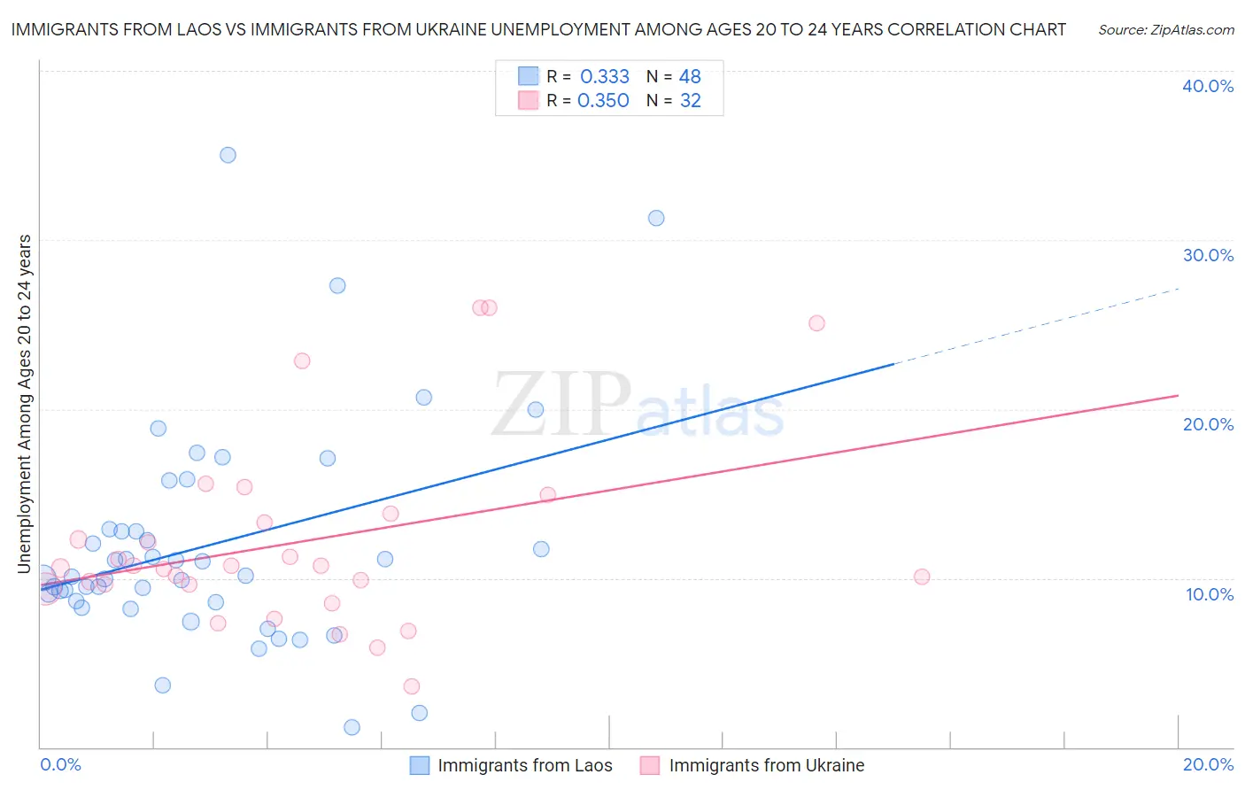 Immigrants from Laos vs Immigrants from Ukraine Unemployment Among Ages 20 to 24 years