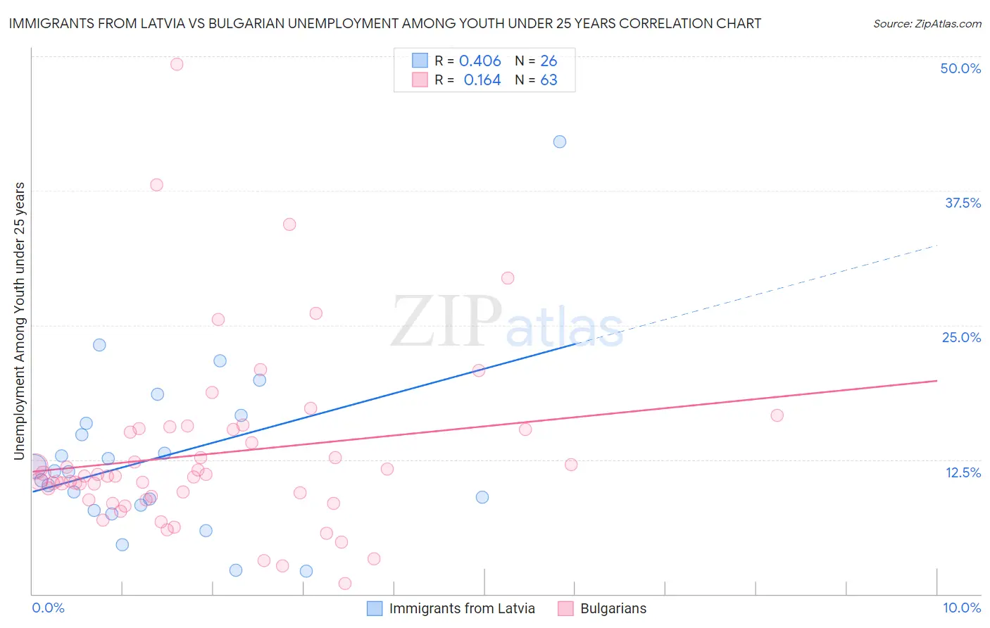 Immigrants from Latvia vs Bulgarian Unemployment Among Youth under 25 years Correlation Chart