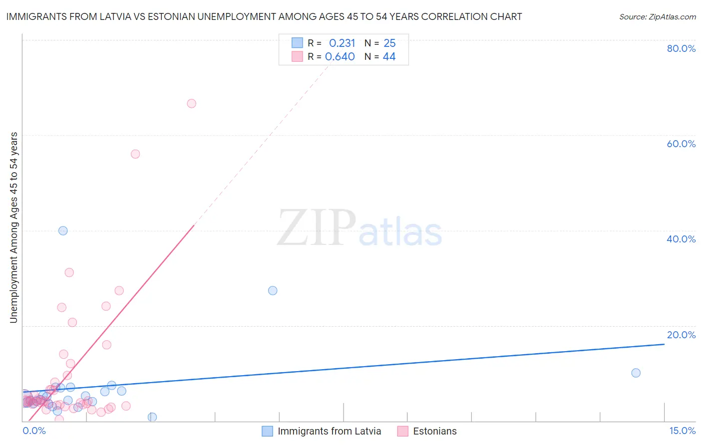 Immigrants from Latvia vs Estonian Unemployment Among Ages 45 to 54 years Correlation Chart
