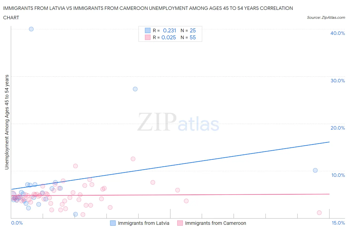 Immigrants from Latvia vs Immigrants from Cameroon Unemployment Among Ages 45 to 54 years Correlation Chart