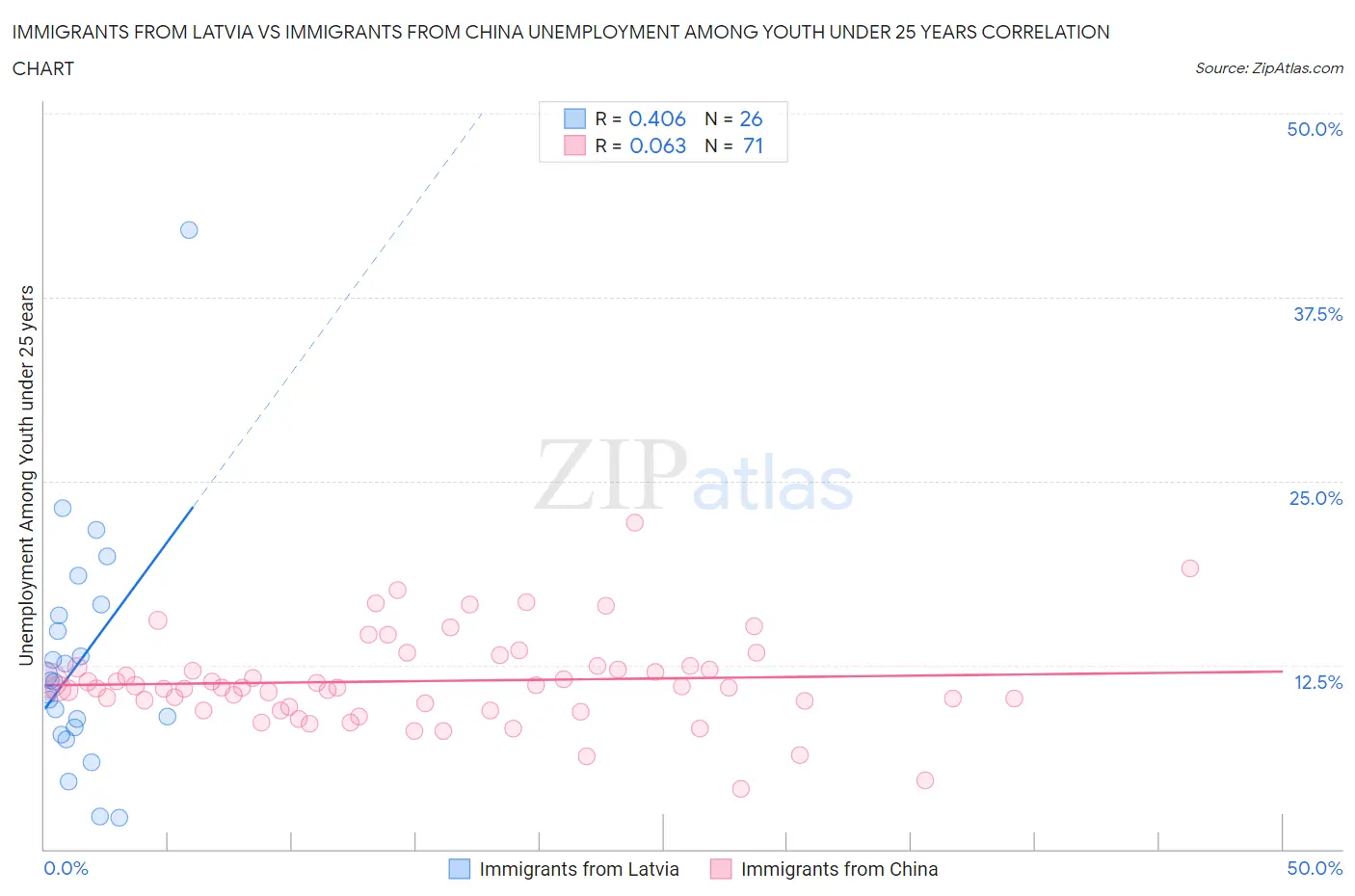 Immigrants from Latvia vs Immigrants from China Unemployment Among Youth under 25 years Correlation Chart