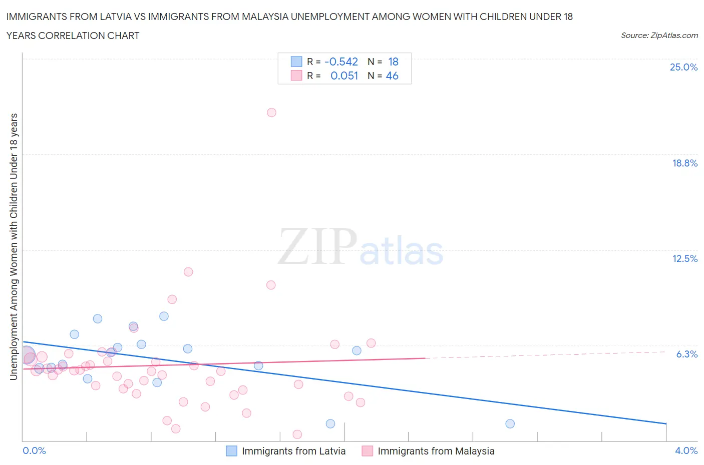 Immigrants from Latvia vs Immigrants from Malaysia Unemployment Among Women with Children Under 18 years Correlation Chart