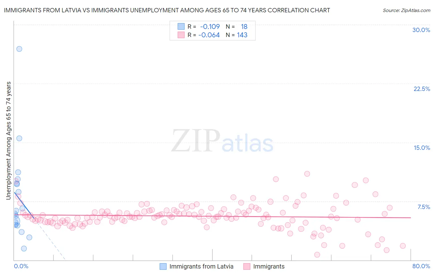 Immigrants from Latvia vs Immigrants Unemployment Among Ages 65 to 74 years Correlation Chart