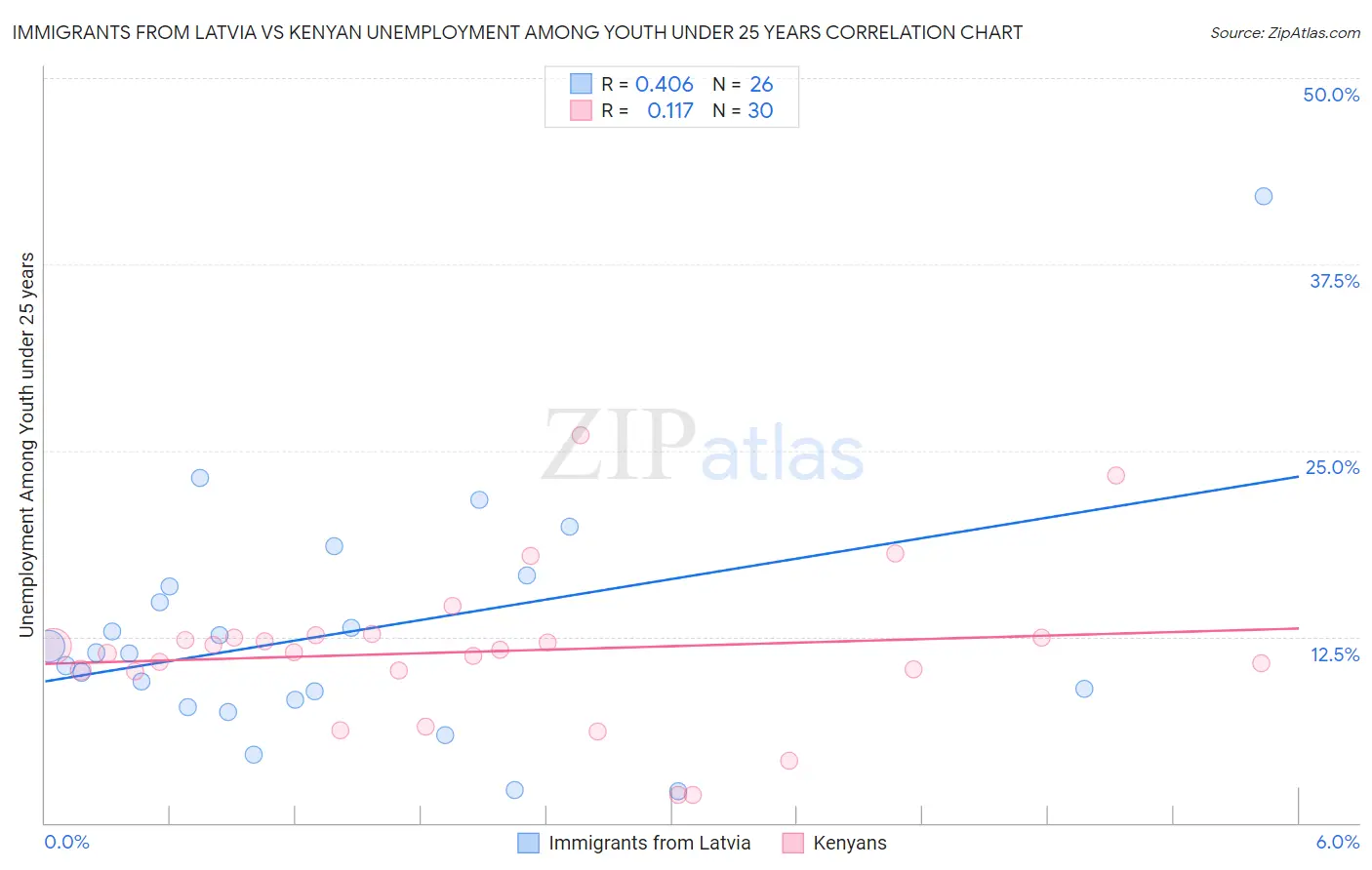 Immigrants from Latvia vs Kenyan Unemployment Among Youth under 25 years Correlation Chart