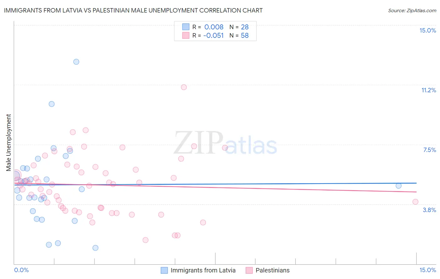 Immigrants from Latvia vs Palestinian Male Unemployment Correlation Chart