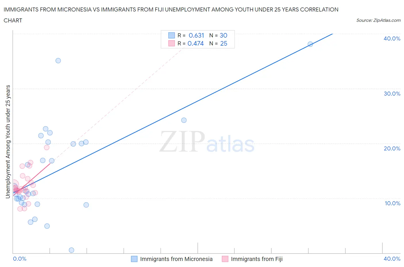 Immigrants from Micronesia vs Immigrants from Fiji Unemployment Among Youth under 25 years Correlation Chart
