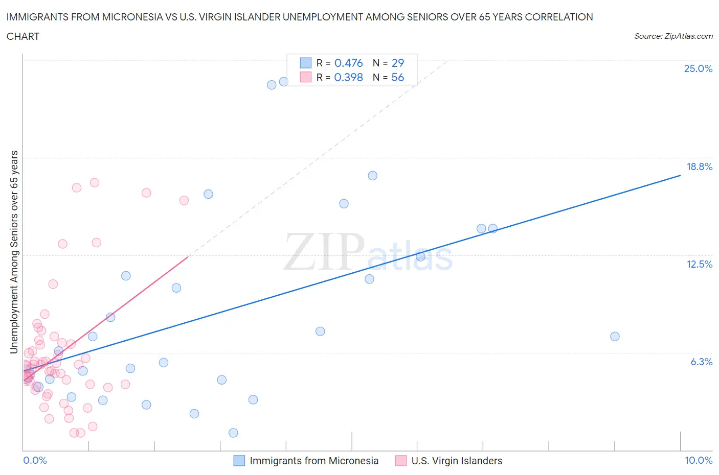 Immigrants from Micronesia vs U.S. Virgin Islander Unemployment Among Seniors over 65 years Correlation Chart