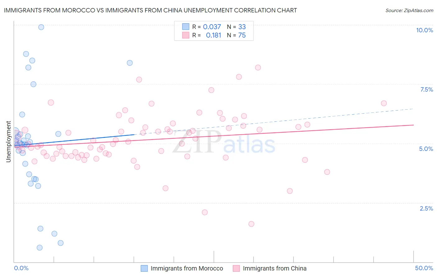 Immigrants from Morocco vs Immigrants from China Unemployment Correlation Chart