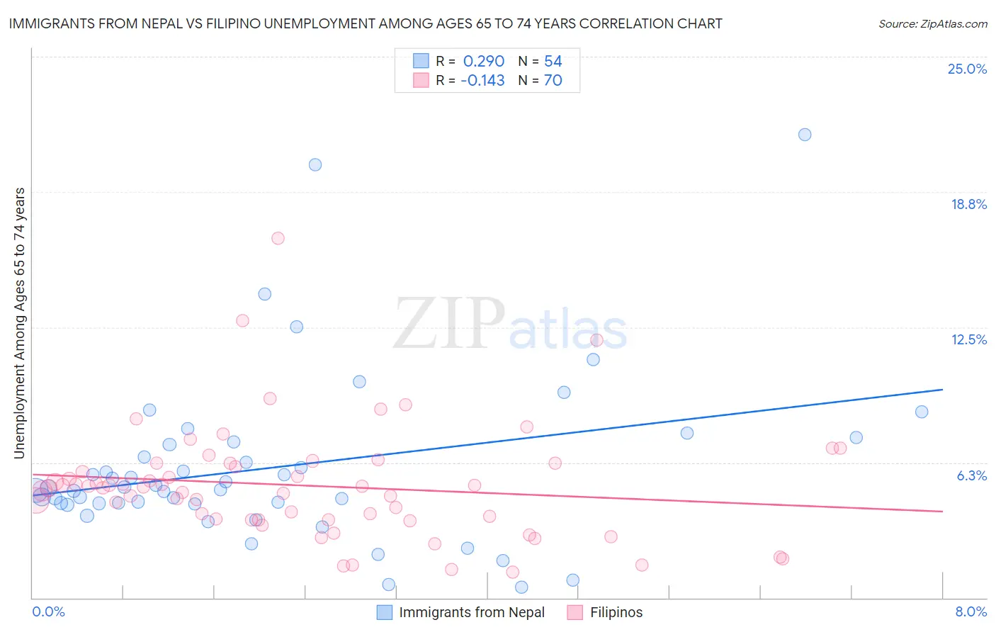 Immigrants from Nepal vs Filipino Unemployment Among Ages 65 to 74 years