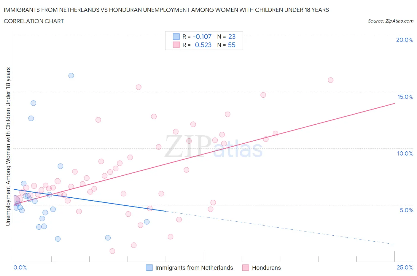 Immigrants from Netherlands vs Honduran Unemployment Among Women with Children Under 18 years Correlation Chart