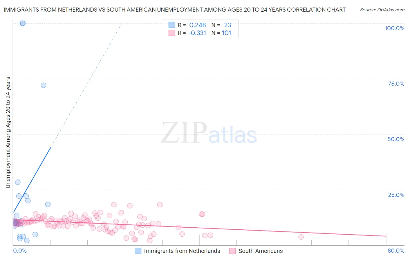 Immigrants from Netherlands vs South American Unemployment Among Ages 20 to 24 years Correlation Chart