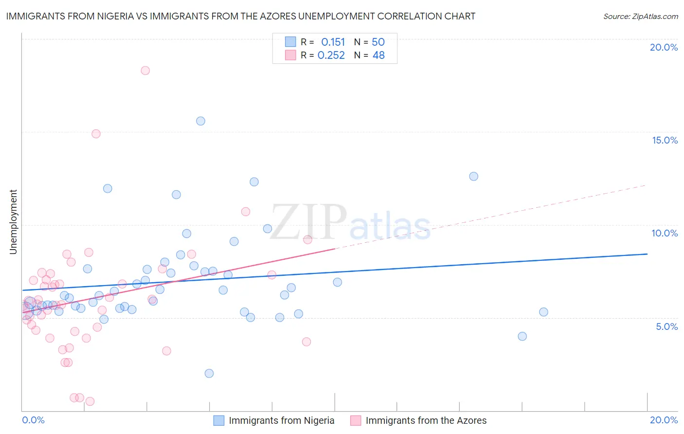 Immigrants from Nigeria vs Immigrants from the Azores Unemployment Correlation Chart