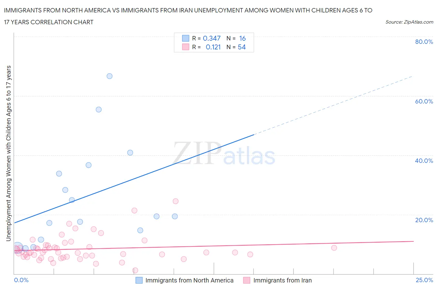 Immigrants from North America vs Immigrants from Iran Unemployment Among Women with Children Ages 6 to 17 years Correlation Chart