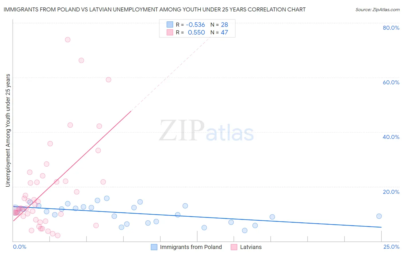 Immigrants from Poland vs Latvian Unemployment Among Youth under 25 years Correlation Chart