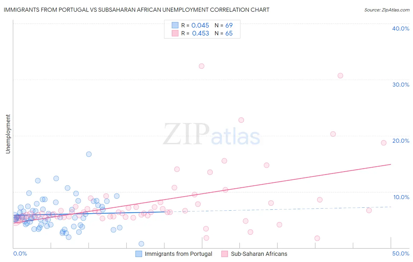 Immigrants from Portugal vs Subsaharan African Unemployment Correlation Chart