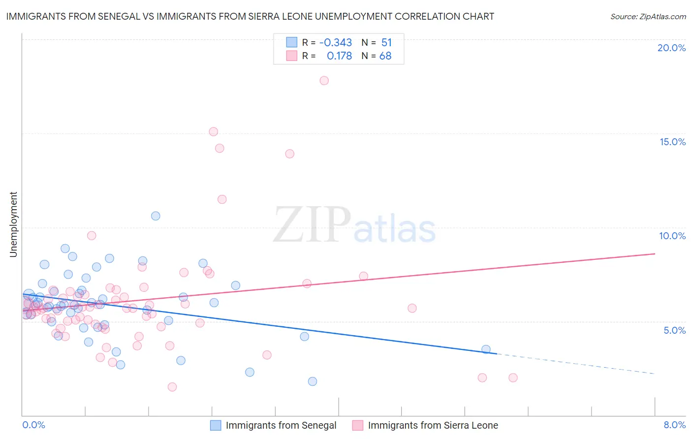 Immigrants from Senegal vs Immigrants from Sierra Leone Unemployment Correlation Chart