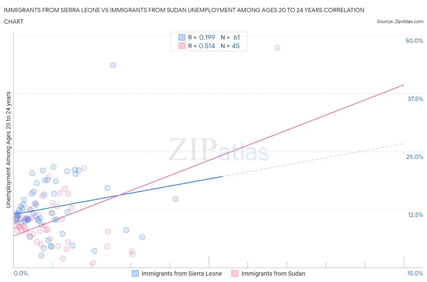 Immigrants from Sierra Leone vs Immigrants from Sudan Unemployment Among Ages 20 to 24 years Correlation Chart
