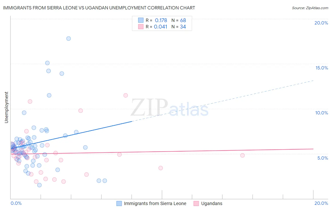 Immigrants from Sierra Leone vs Ugandan Unemployment Correlation Chart
