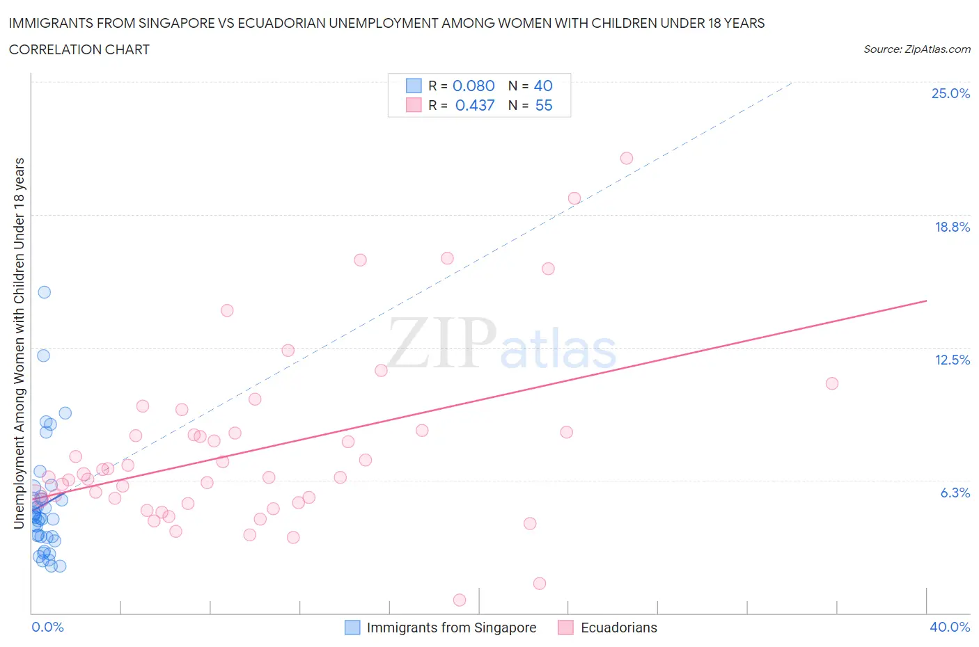 Immigrants from Singapore vs Ecuadorian Unemployment Among Women with Children Under 18 years Correlation Chart