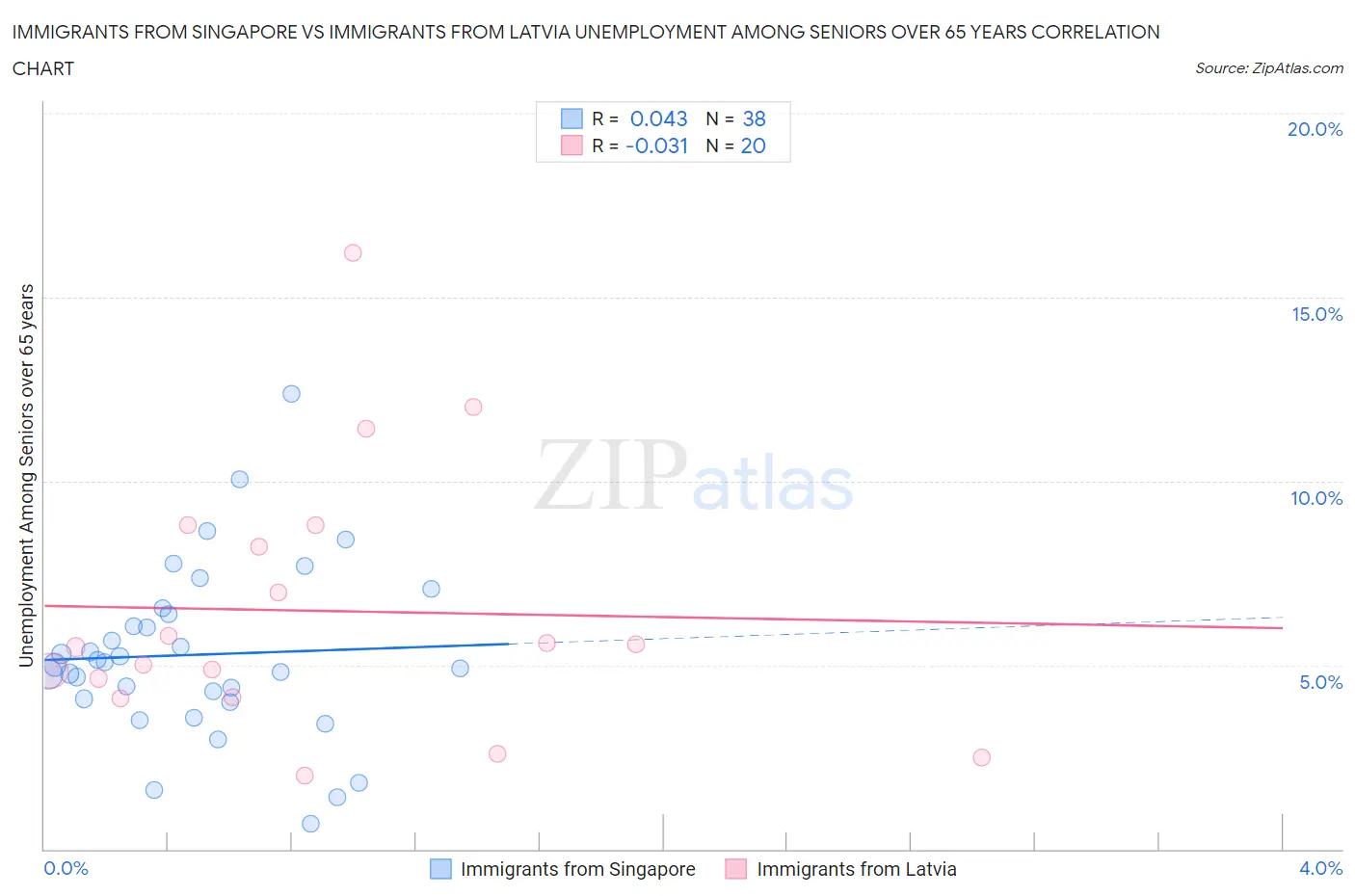 Immigrants from Singapore vs Immigrants from Latvia Unemployment Among Seniors over 65 years Correlation Chart