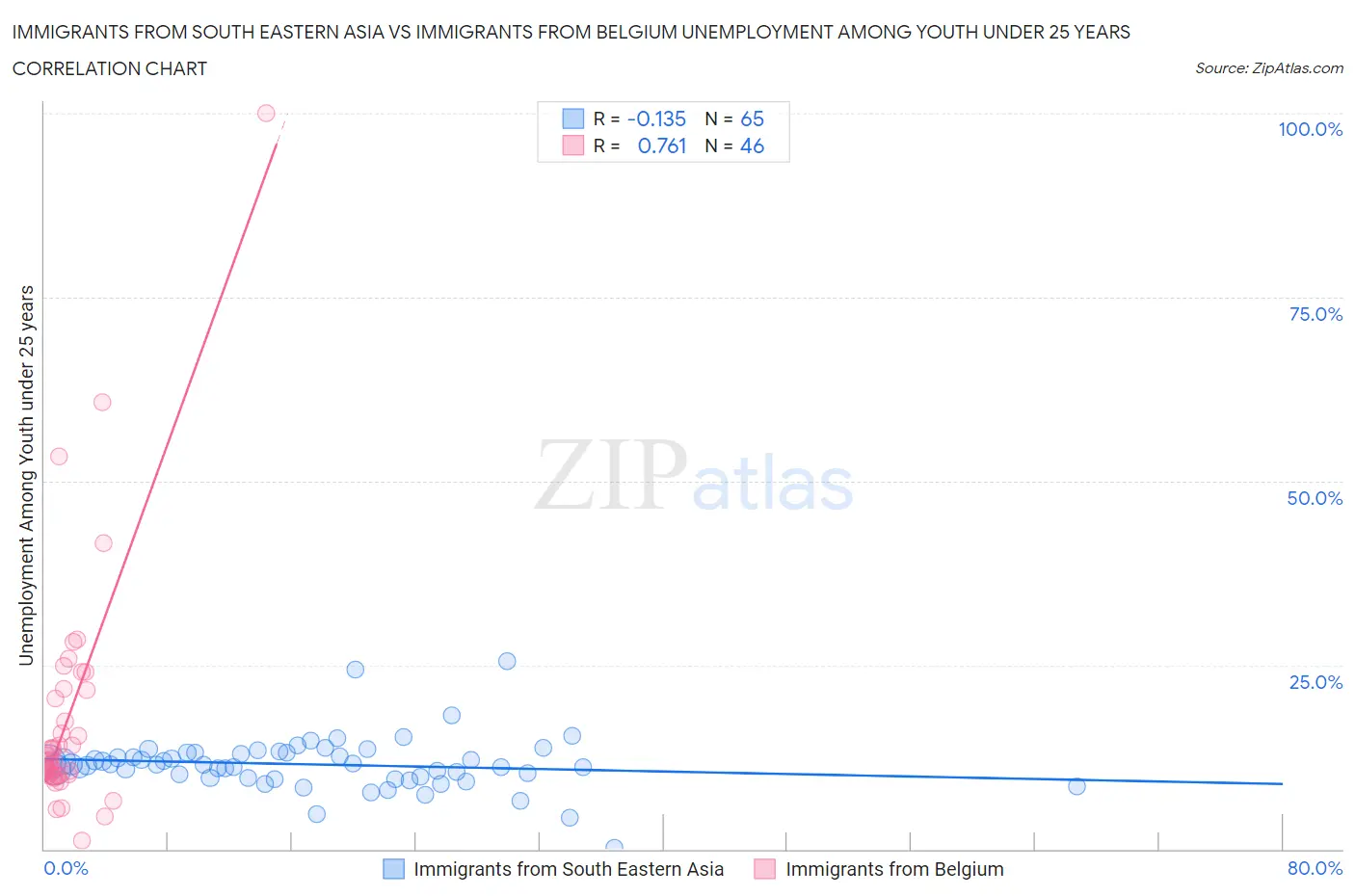 Immigrants from South Eastern Asia vs Immigrants from Belgium Unemployment Among Youth under 25 years Correlation Chart