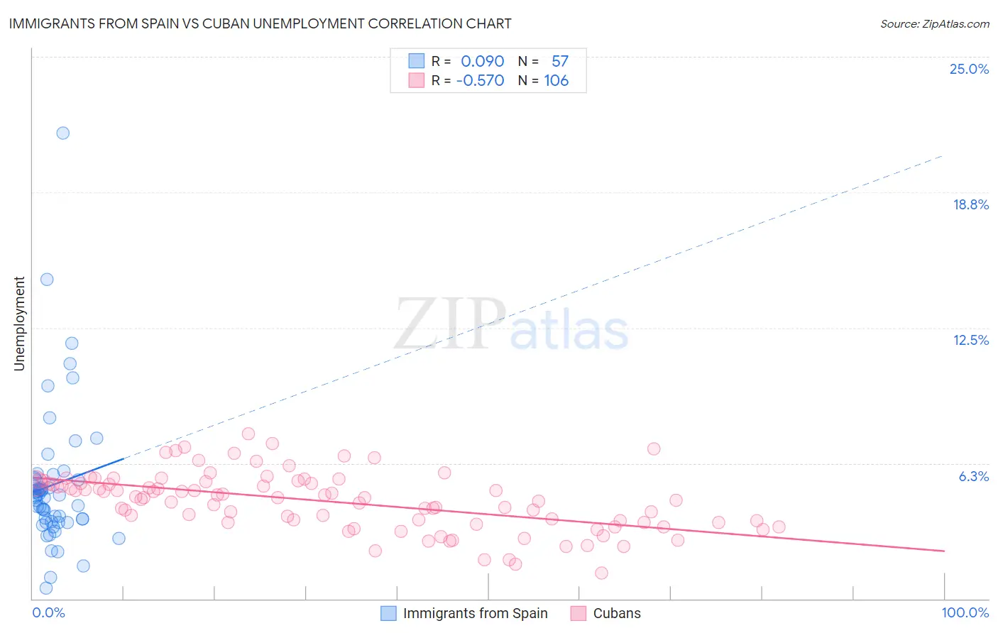 Immigrants from Spain vs Cuban Unemployment Correlation Chart