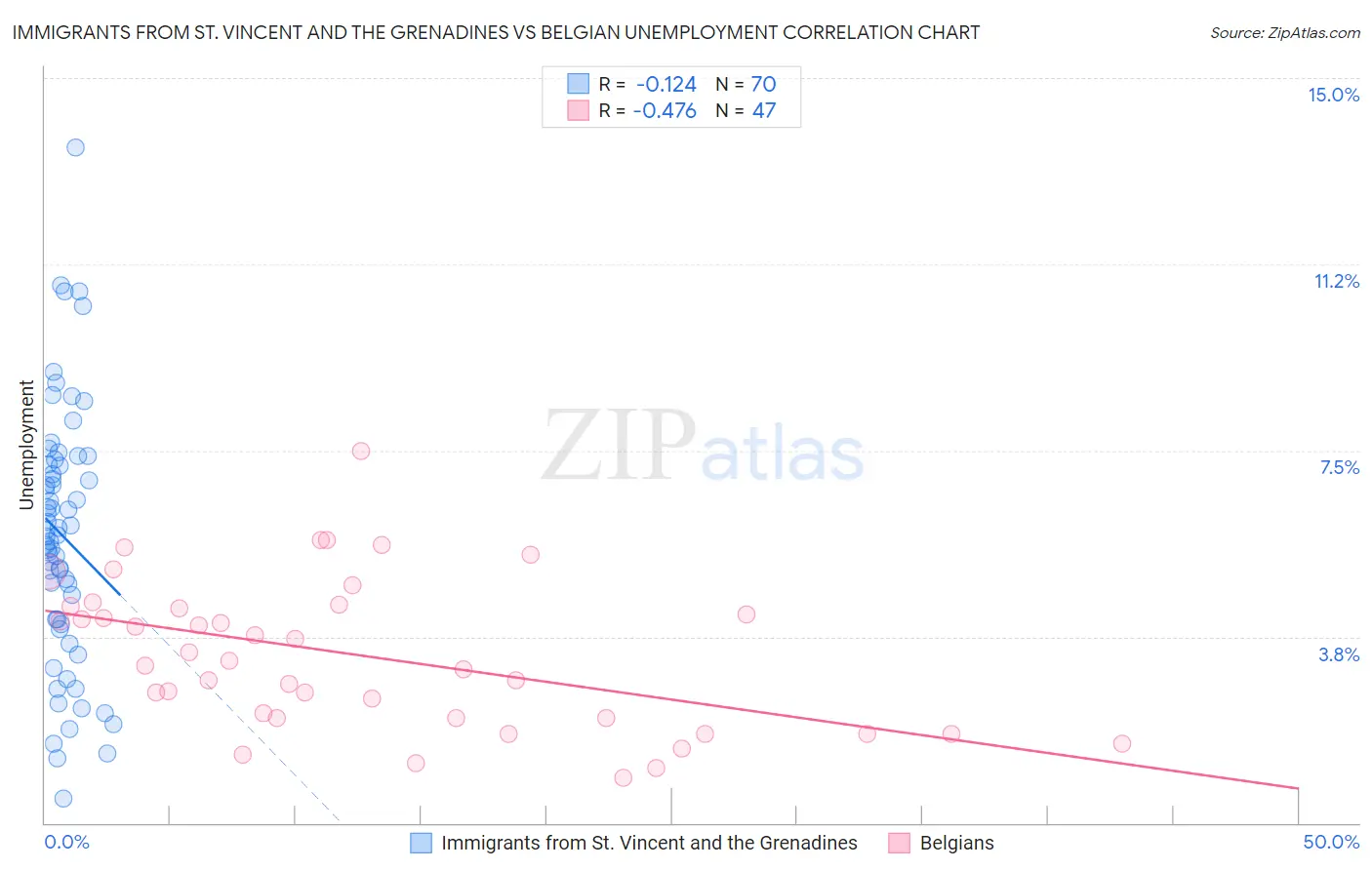 Immigrants from St. Vincent and the Grenadines vs Belgian Unemployment Correlation Chart