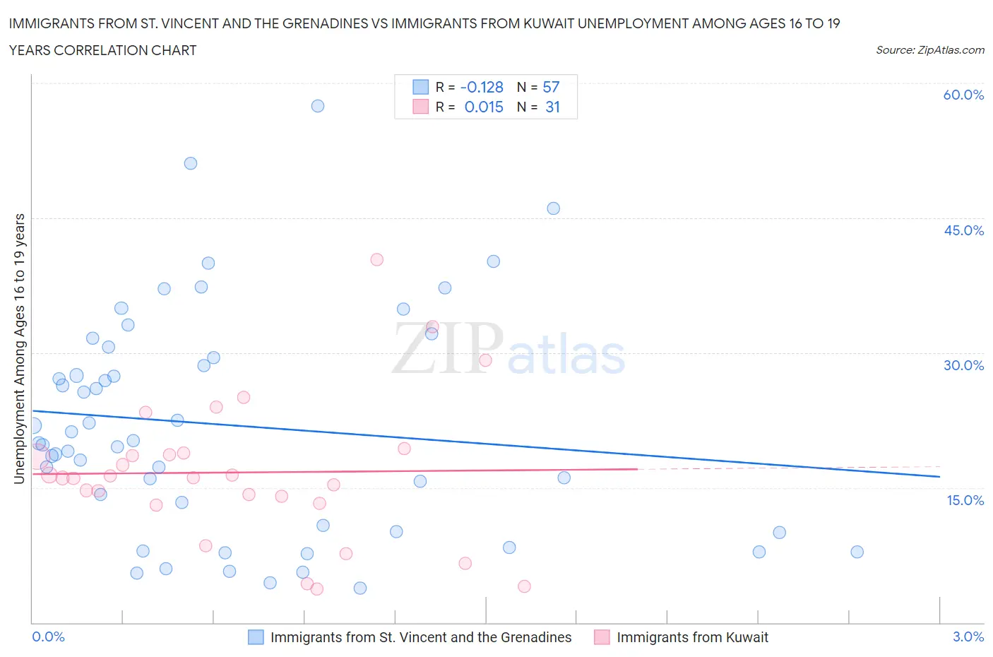 Immigrants from St. Vincent and the Grenadines vs Immigrants from Kuwait Unemployment Among Ages 16 to 19 years Correlation Chart