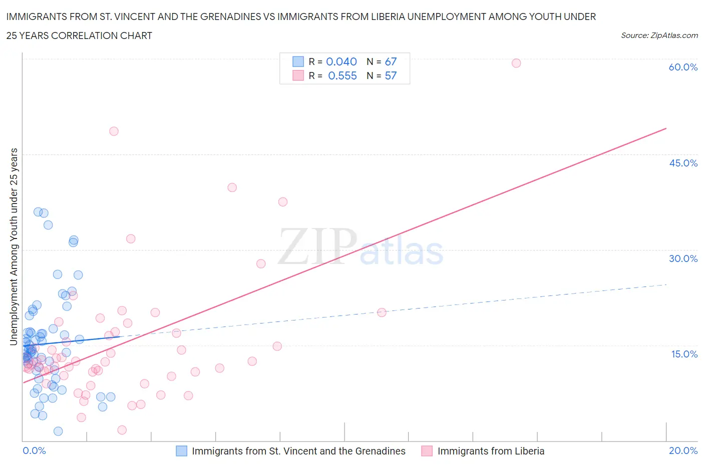 Immigrants from St. Vincent and the Grenadines vs Immigrants from Liberia Unemployment Among Youth under 25 years Correlation Chart