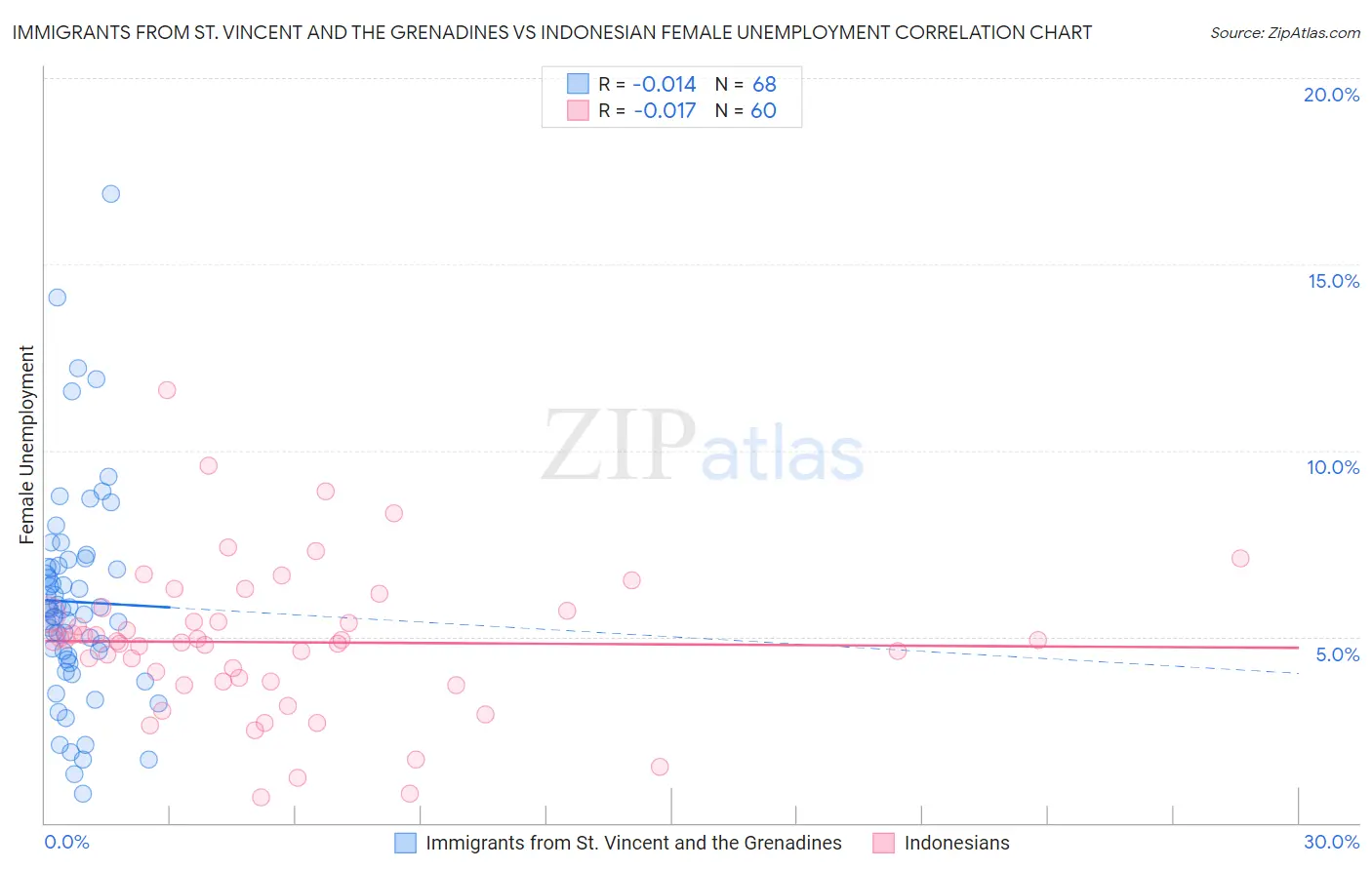 Immigrants from St. Vincent and the Grenadines vs Indonesian Female Unemployment Correlation Chart