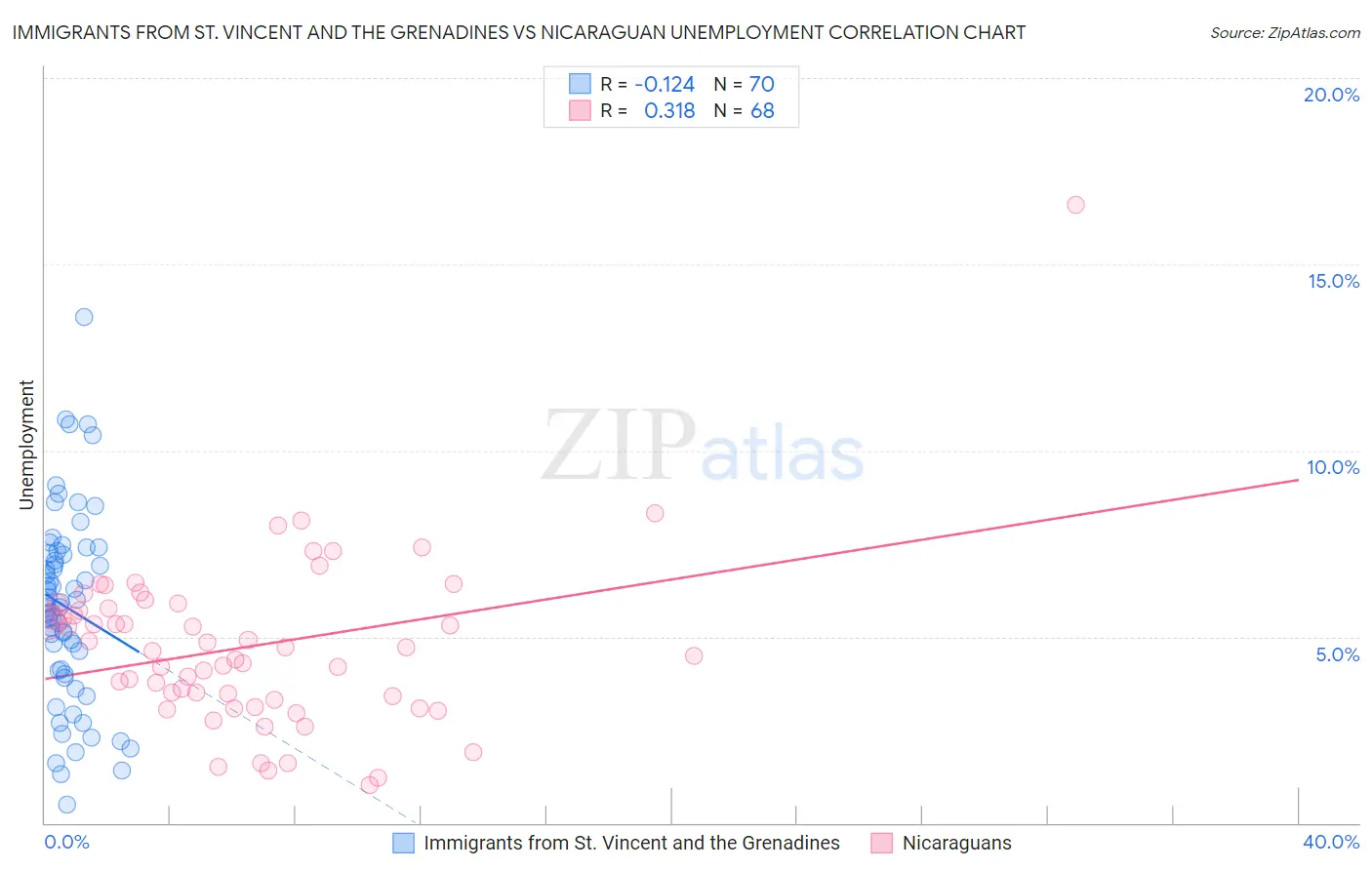 Immigrants from St. Vincent and the Grenadines vs Nicaraguan Unemployment Correlation Chart