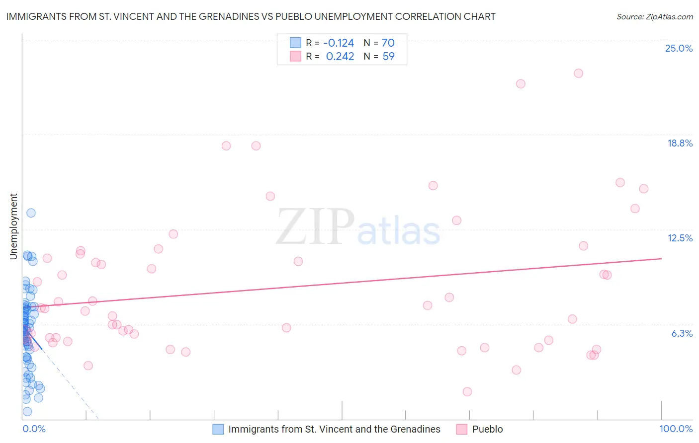 Immigrants from St. Vincent and the Grenadines vs Pueblo Unemployment Correlation Chart