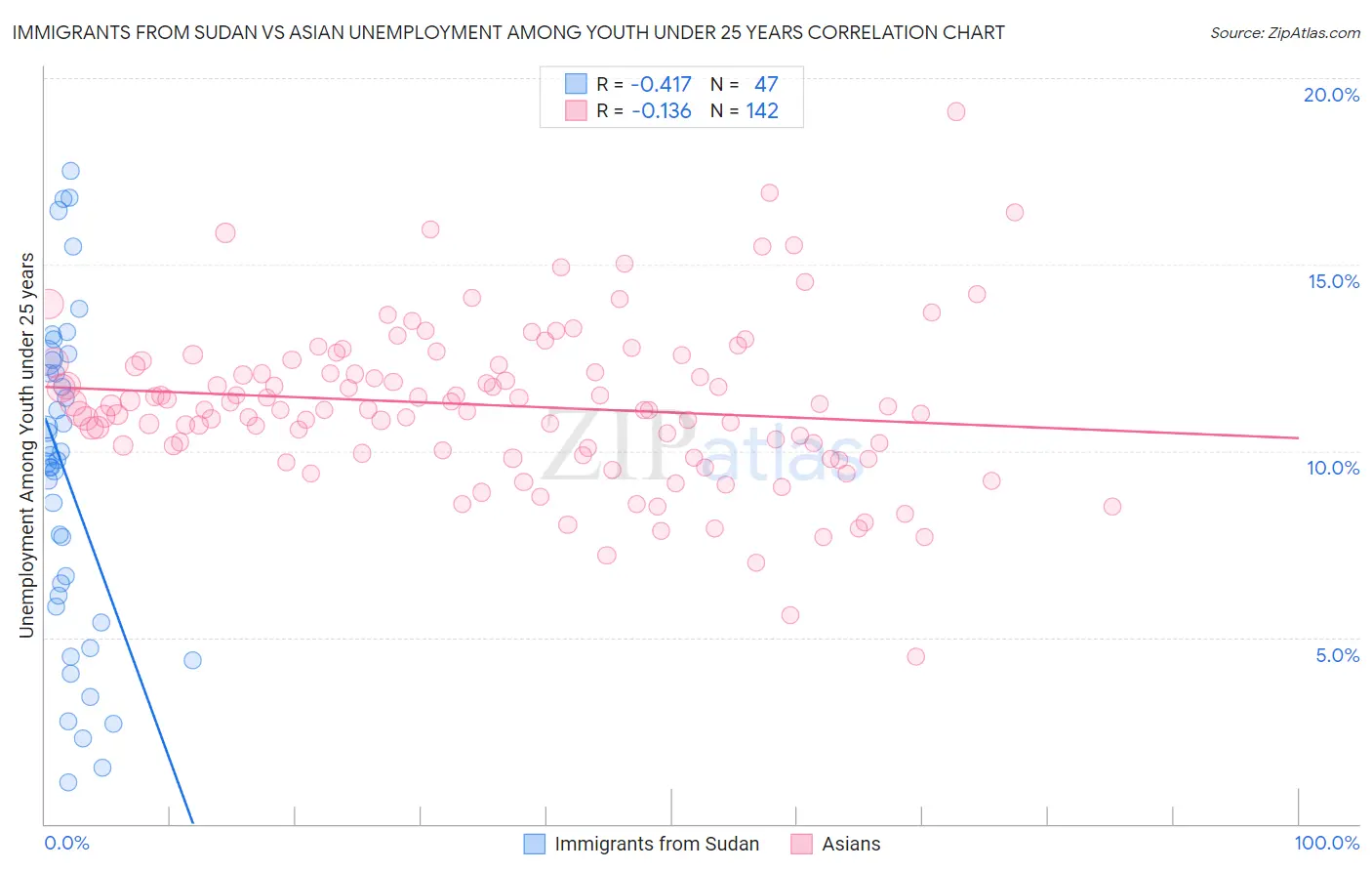 Immigrants from Sudan vs Asian Unemployment Among Youth under 25 years Correlation Chart
