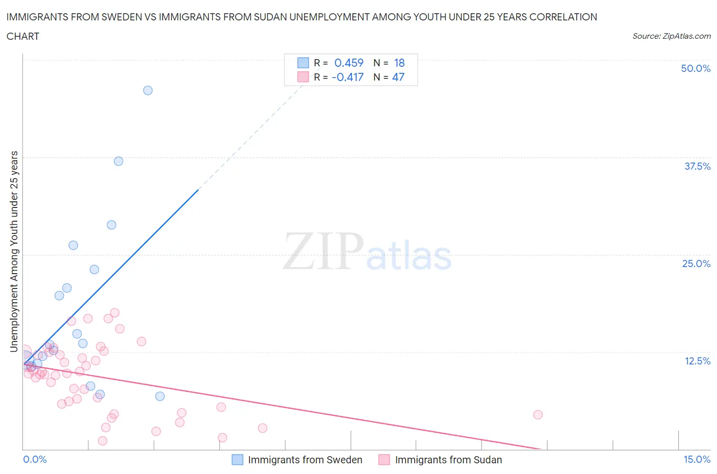 Immigrants from Sweden vs Immigrants from Sudan Unemployment Among Youth under 25 years Correlation Chart