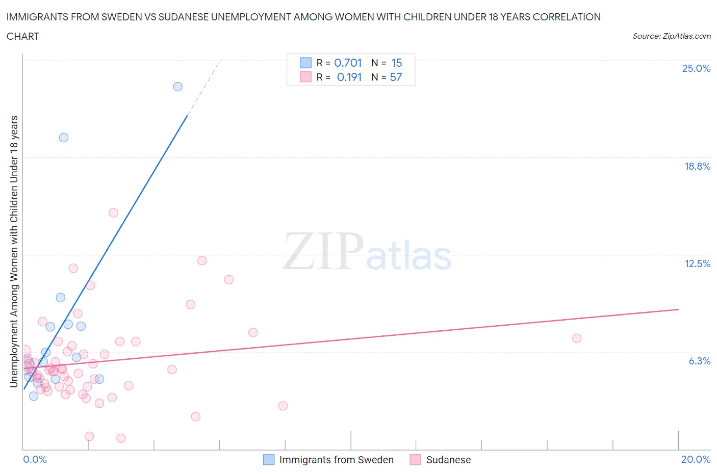 Immigrants from Sweden vs Sudanese Unemployment Among Women with Children Under 18 years Correlation Chart